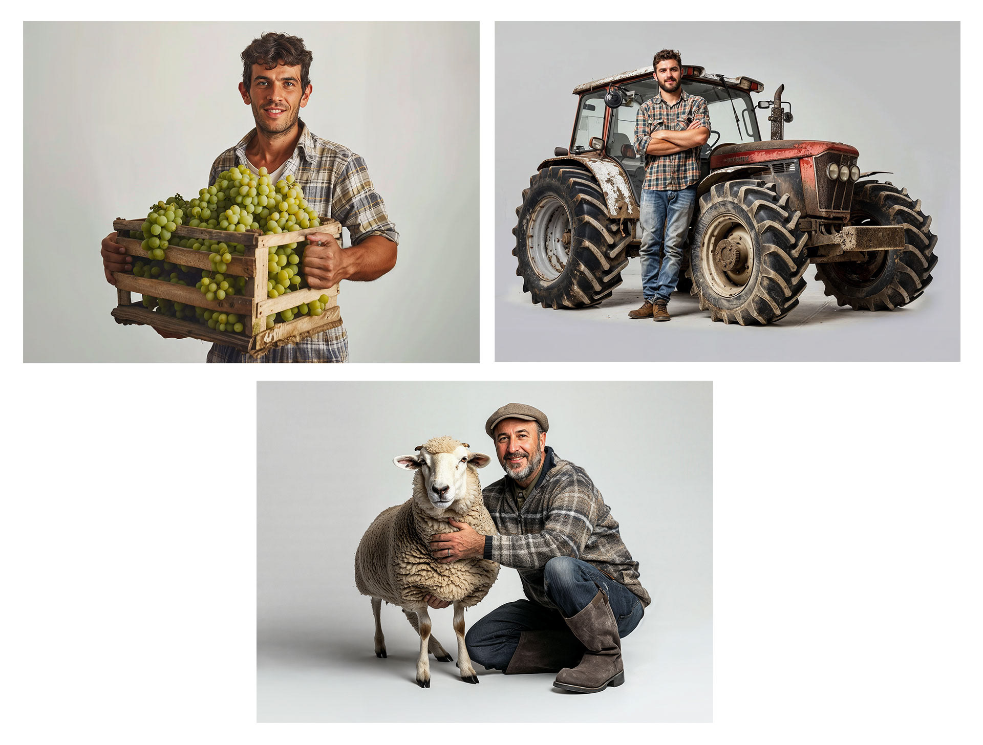 Cada imagem foi criada para refletir o contexto e a rotina de quem representa — do trabalhador rural moldado pelo sol ao cidadão urbano de traços mais sutis. As feições, tons de pele e expressões foram pensados com base nas particularidades de cada ambiente, traduzindo diferenças reais entre o campo e a cidade. Mais do que ilustrar categorias de serviço, cada retrato carrega fragmentos de histórias e modos de vida, aproximando a marca das pessoas com autenticidade e sensibilidade.