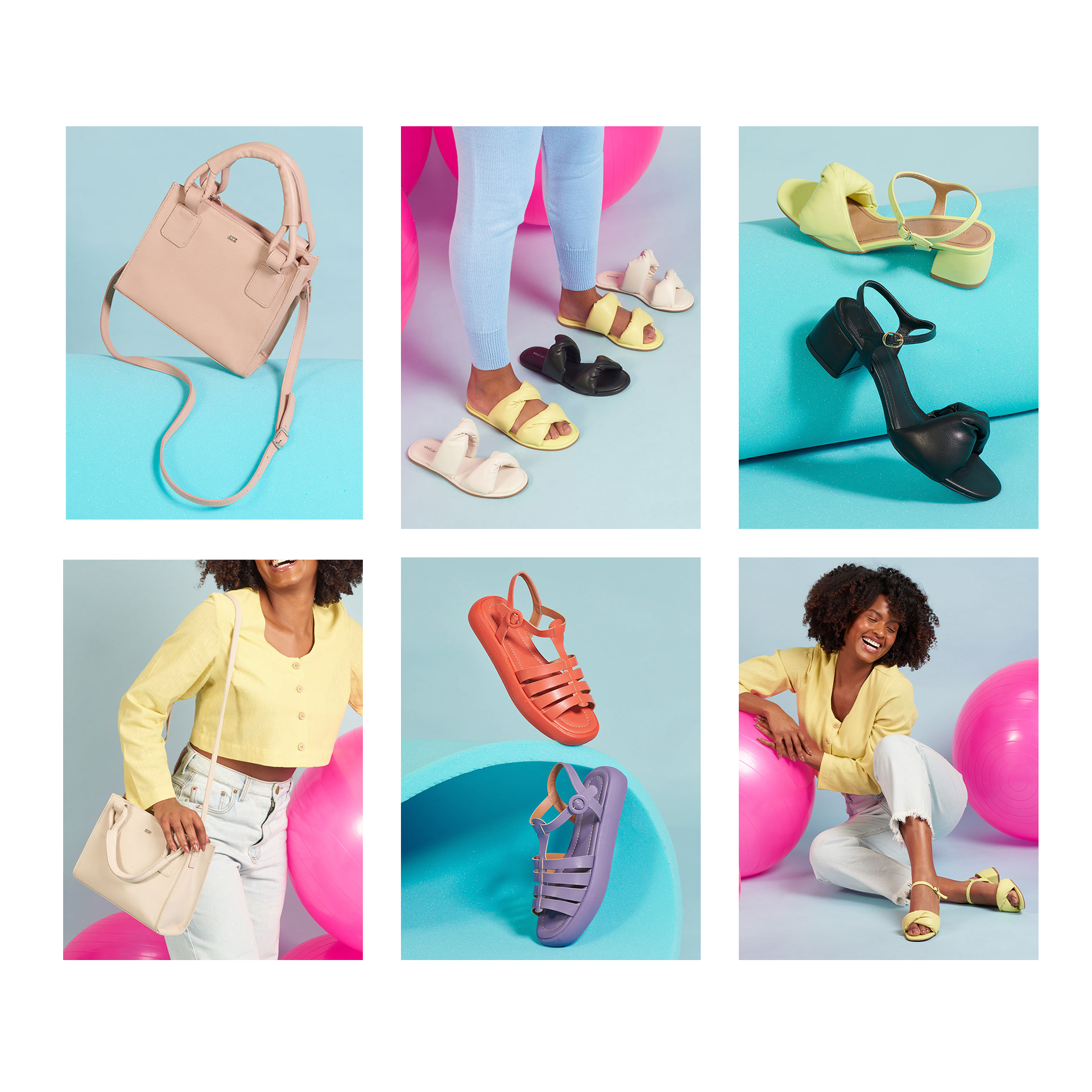 A paleta mantém uma leitura monocrômica, mas com pontos de cor que trazem frescor e um clima fun.