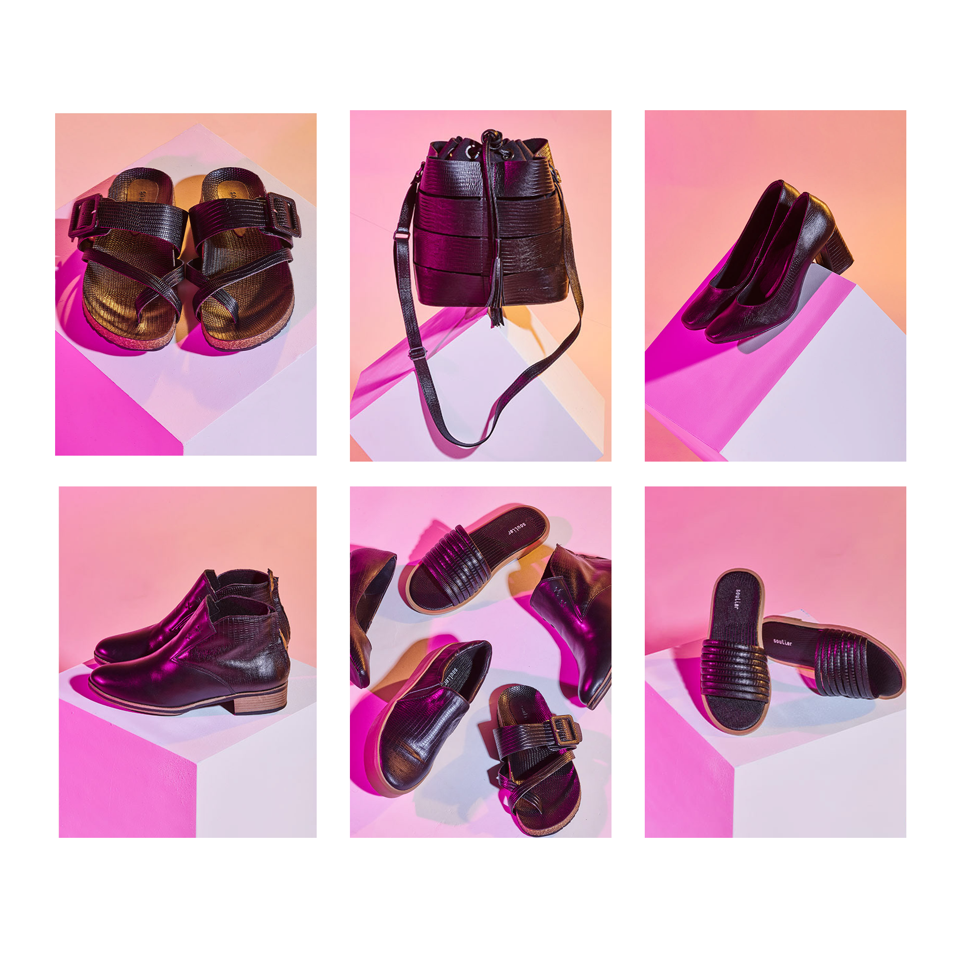 No Rio Noturno, o preto ganha nova vida através das texturas de lagarto, criando um visual marcante e cheio de atitude.